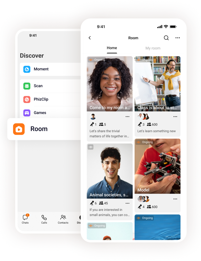 Mergulhe em salas ao vivo criadas por outros diretamente a partir dos seus chats em grupo. Seja para participar de um evento ao vivo, assistir a um webinar interativo ou apenas relaxar em uma transmissão animada, a Sala facilita a entrada e a participação. Experimente a emoção da interação em tempo real e conecte-se com pessoas em sessões ao vivo dinâmicas e envolventes.