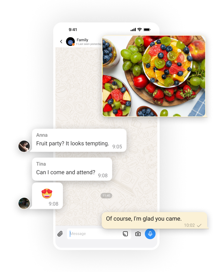 Use os chats em grupo para mais do que apenas conversas. Planeje eventos, compartilhe arquivos e trabalhe em projetos junto com sua equipe ou amigos. Compartilhe sua tela para trabalho colaborativo ou para exibir conteúdo em tempo real. Aproveite recursos interativos como enquetes e notas compartilhadas, tornando cada chat em grupo mais produtivo e agradável..